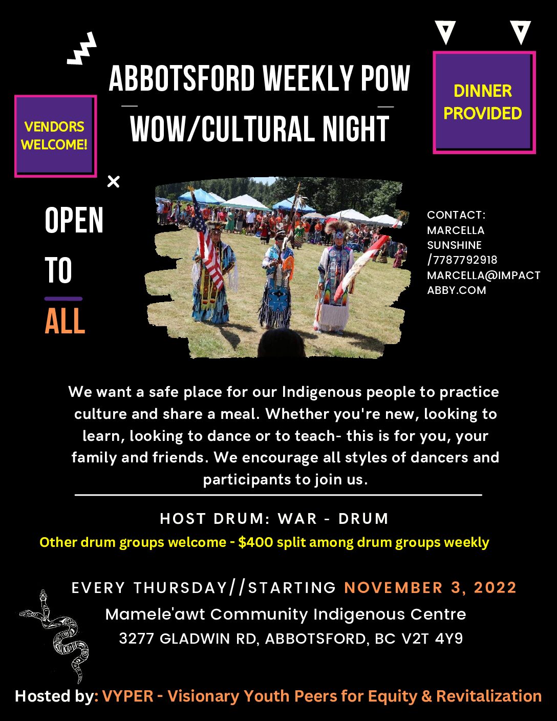VYPER MONTHLY POW WOW – November 8, 2023 – 4 to 8:30 pm